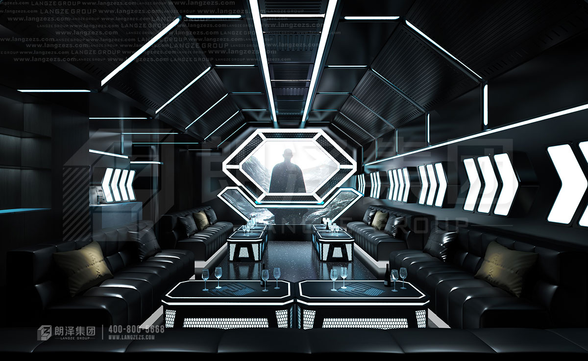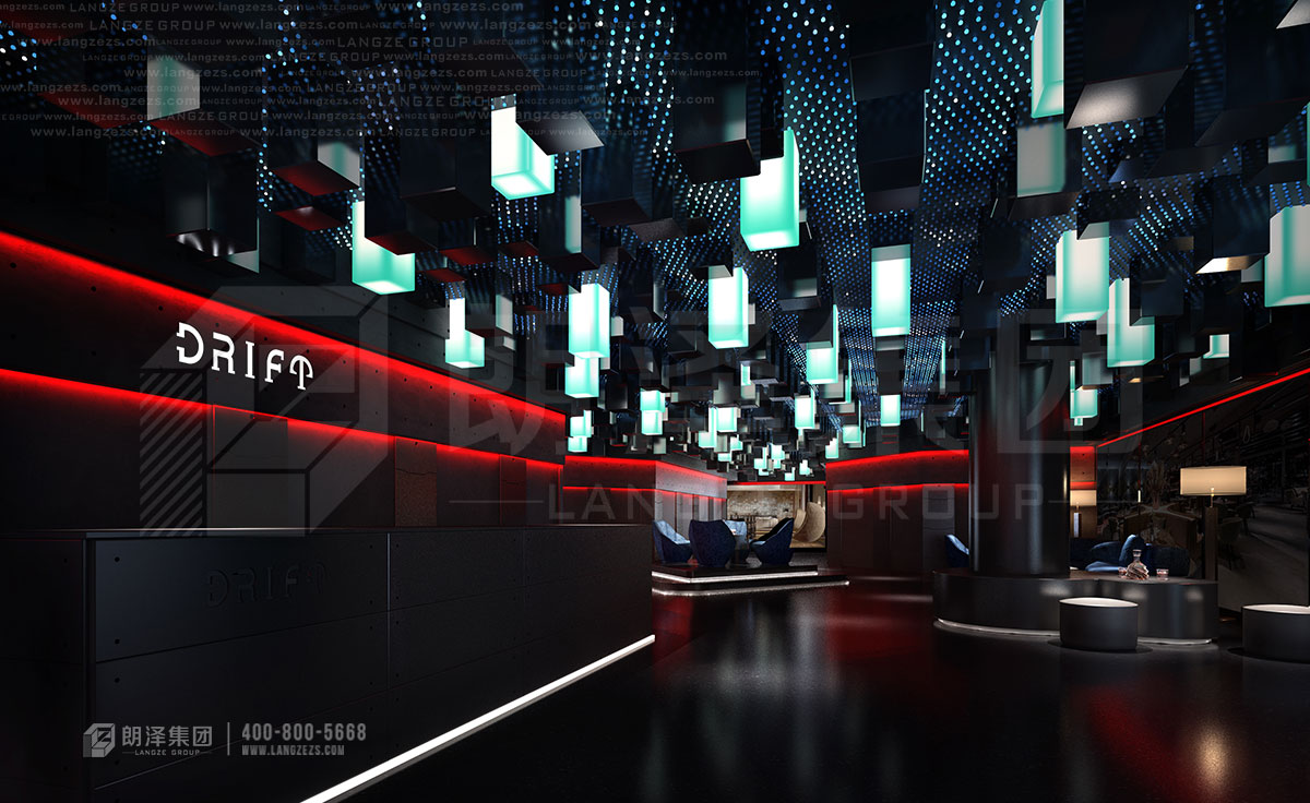 南京DRIFT K KTV結(jié)合現(xiàn)在年輕人喜歡的元素,以潮流、前衛(wèi)的風(fēng)格進(jìn)行打造。前廳以星星點(diǎn)點(diǎn)的燈光結(jié)合幾何體燈打造如星際般的氛圍。水吧區(qū)則以輕奢風(fēng)進(jìn)行打造,采用陀螺椅更增加空間的參與感和趣味性。包房則以不同的風(fēng)格進(jìn)行混搭設(shè)計(jì),科技、復(fù)古、輕奢、趣味不盡相同,但又無不體現(xiàn)時(shí)代主題。